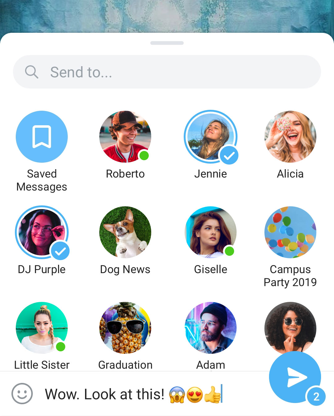 Want to share a message far and wide? Pull up the new streamlined sharing menu to cover the entire screen and select your whole gang. And don‘t fret if you’re short on words, the comment field now supports emoji.