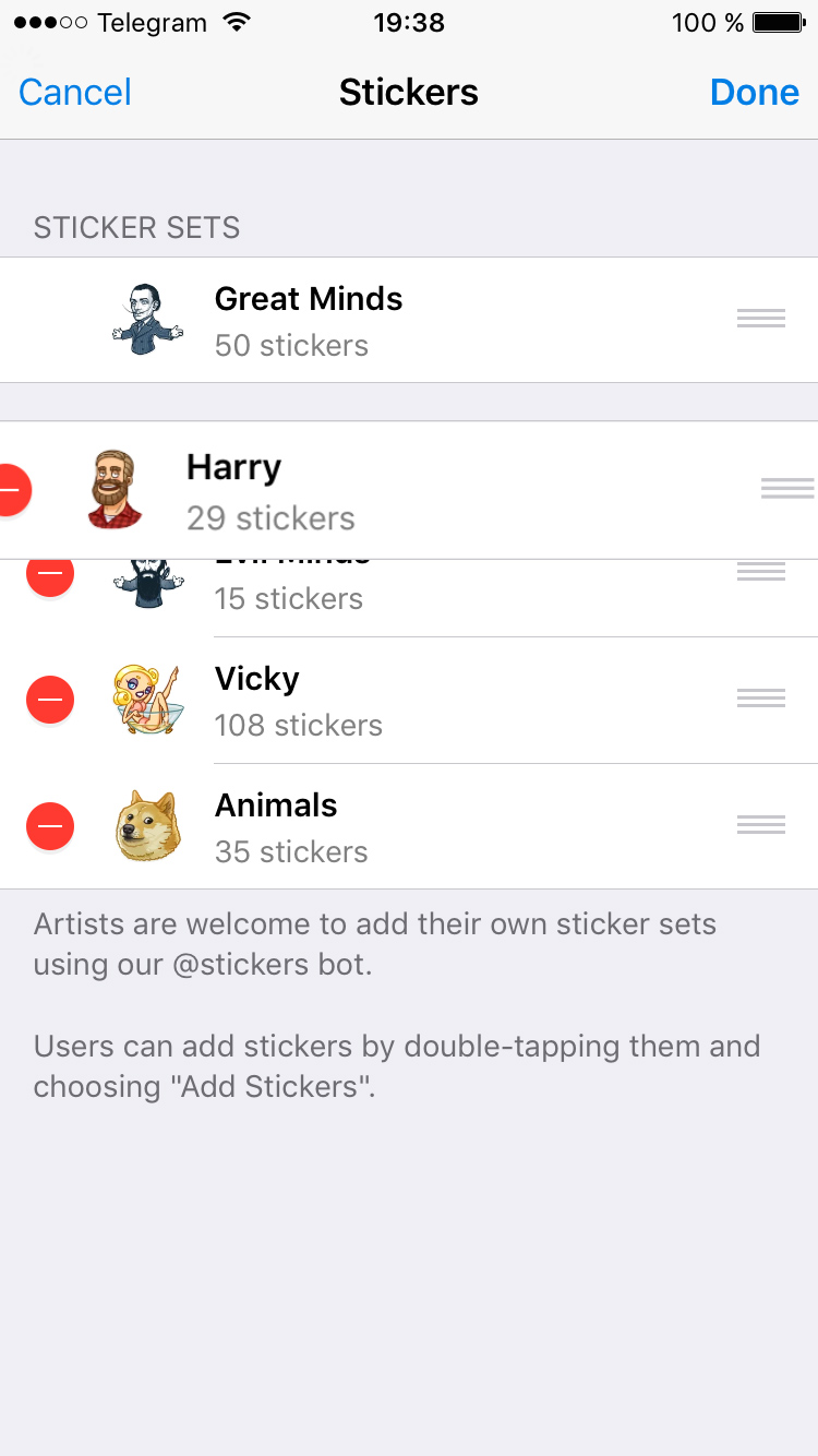 We've also improved the ordering of sticker packs. You can now manually arrange your sticker packs in the order you prefer, and the order will be synced across your devices. Access sticker settings via the new button, right on the sticker panel.