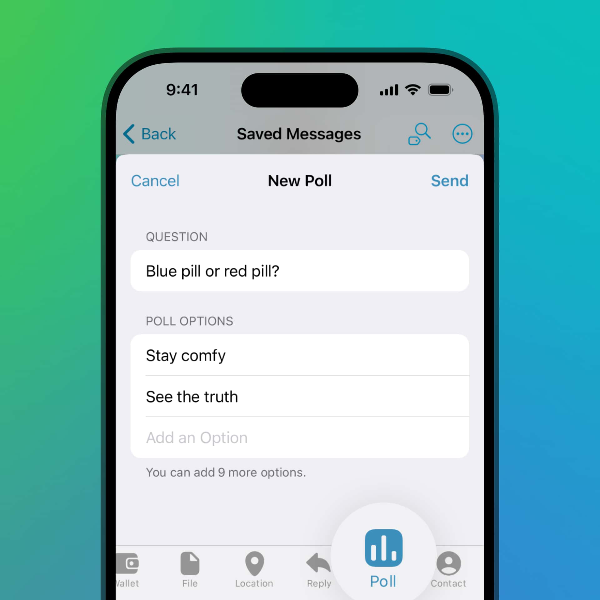 This update makes polls even more flexible with support for up to 12 options. Polls can also now be sent to your Saved Messages — to bookmark the results for future reference or share the poll with other chats later.