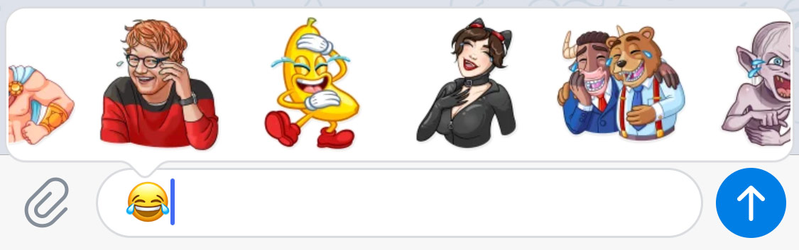 Today we're launching Telegram 4.8 for iOS and Telegram 4.8.5 for Android which make it much easier to discover new stickers. From now on, when you type one emoji, you will see suggestions not just from the sticker sets you've added, but also from other popular sets.