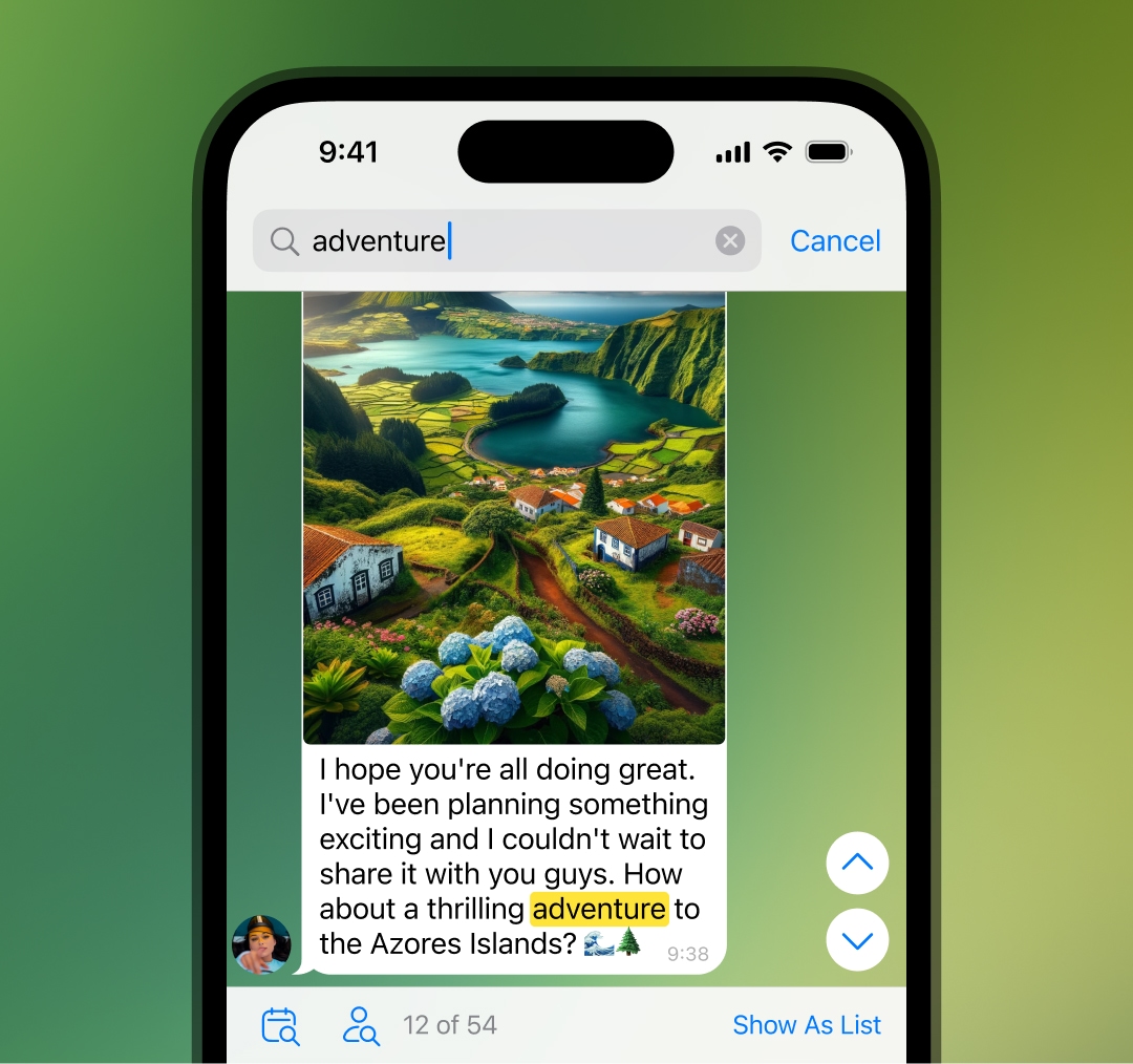 We've improved searching in all chats, and now it's easier to navigate your search results and view them as a compact list.