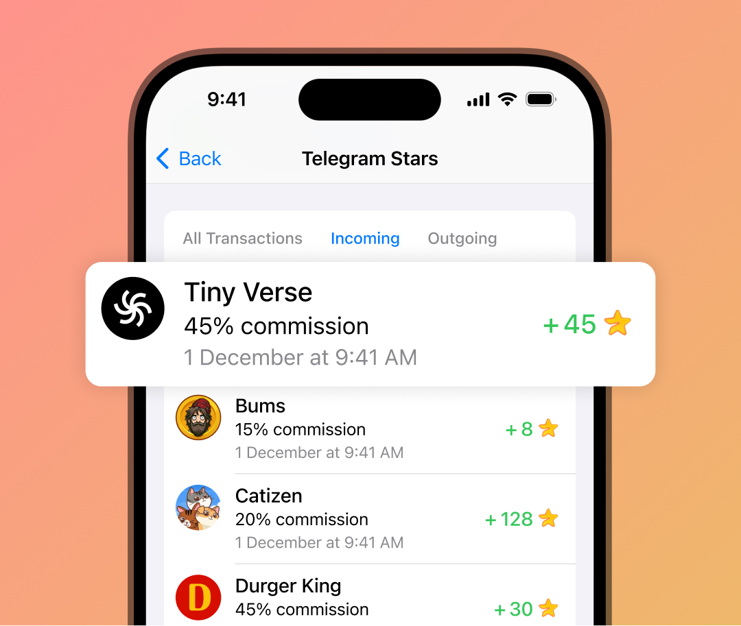 Developers are able to open affiliate programs for their mini app – allowing content creators, other mini app developers and any Telegram user to promote it and earn commissions on purchases made by people they referred.